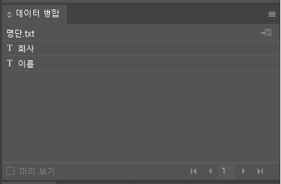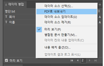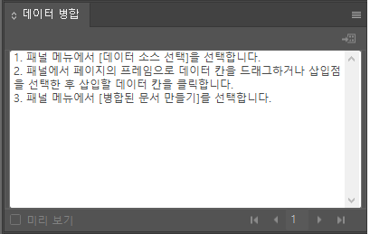이제 가변이 잘 된 것인지 확인할 일만 남았습니다. 데이터병합 메뉴에서 왼쪽 하단 미리 보기를 체크해 봅시다.